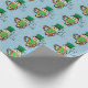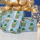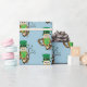 A cute barn owl wearing a green leprechaun top hat with two clovers in it