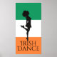 Silhouette Girl Irish Dancing Hard Shoe Toe Stand with Flag of Ireland Background Dance Beach Poster -