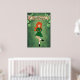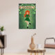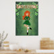 This Irish Dance poster features an Irish Dancer with red hair with a green shamrock background.