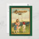 Cute Irish art illustration of children in a field, with a dirigible (zeppelin? blimp?) overhead, scattering shamrocks across the landscape. Send St. Patrick's Day greetings to friends and family, or add text to create a personal St. Patrick's Day birthday card or other greeting.
