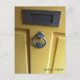 A simple yellow door with a traditional Irish Claddagh door knocker and mail slot. Image taken in Galway, Ireland. Appropriate postcard to send a simple note to a friend or loved one.