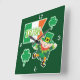 This is a cute novelty clock to show your Irish side throughout the year! It features a dancing cartoon leprechaun in green and orange. Beside him is a green, white, and orange flag with the text IRISH across it. Scattered green shamrocks complete the image, which is placed on a dark green background. Festive, bright, and colourful! *Clip art used in this design is copyrighted by Encore Software, Inc., which permits use to its licensors. All rights reserved.