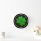 Wall Clock: Patriotic Ireland & Irish Flag colours rings surrounding "Lucky Clover Leaf" symbol of Ireland and Saint Patricks Day - love my country, lucky charm, good luck for weddigs, national patriots / sports fans