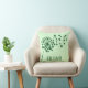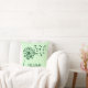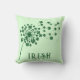 This fun pillow has a green dandelion on it with clover blowing in the wind, instead of parachute puffs. Below it says IRISH. Set against a pale green background. The reverse side of the pillow has the same pale green background and is then covered with a pattern of clover.
