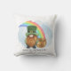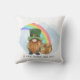 Cute St. Patrick's Day reversible pillow design featuring an illustration of an Irish gnome and a pot of gold under a rainbow along with the words "Happy St Patrick's Day" on the front and in Celtic on the back as “Lá Fhéile Pádraig sona duit!". Customise it with your own message or leave as is. Perfect for St. Patrick's Day shenanigans!