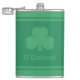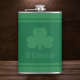 Custom clover shamrock whisky flask features a simple last name monogram that can be personalised, framed by masculine stripes. Makes a great present for your favourite Irish lad. A perfect accessory to celebrate St. Patrick's Day!