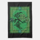 Tribal black dragon with Celtic knot work wings. Shades of green and Celtic knot work all behind and around the dragon and four leaf clover.