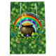 A Medium Gift Bag Design In A Lucky Green Irish Four Leaf Clover With Rainbow And Pot Of Gold For Birthday's Or St. Patrick's Day Gifts