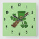 Irish Hat and Shamrocks Black Numbers Square Wall Clock