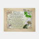 A beige frame with flowers, butterflies, and clovers contains an Irish House Blessing. "Bless This House O Lord, we pray. Make it safe by night and day. Bless these walls so firm and stout, Keeping want and trouble out. Bless the roof and chimney tall, Let thy peace lie over all. Bless the doors that they may prove Ever open to joy and love. Bless the windows shining bright, Letting in God's heavenly light. Bless the hearth a-blazing there, With smoke ascending like a prayer. Bless the people here within"