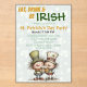 A playful St. Patrick’s Day invitation with lively Irish‑themed illustrations and a shamrock‑filled backdrop. All text and elements are customizable, and the matching patterned reverse side completes the design.