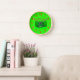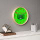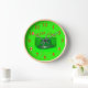 A green HAT with IRISH LUCK that's on a WALL CLOCK.