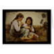 Two little girls sit together in the grass. The older of the two plays a tin whistle. Vintage 19th century Irish artwork.
