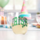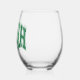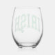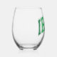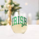 Show your Irish pride with this fun stemless wine glass that features the word "IRISH" in a curved varsity lettering retro script in distressed colours of light and dark green.