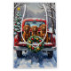 Bring vibrant, graceful charm to your holiday season with this stunning Irish Red Setter Christmas design! This festive scene features three handsome, rich red-coated Irish Red Setters sitting attentively in the back of a classic red pickup truck, nestled in a picturesque snowy winter forest. The vintage truck is adorned with a vibrant Christmas wreath, twinkling with red and gold ornaments and warm, glowing lights. Soft snowflakes gently fall, enhancing the winter wonderland effect. A decorated Christmas tree in the background completes this heartwarming picture, making it an ideal Christmas gift for any Irish Red Setter owner, dog lover, or admirer of festive and beloved sporting dog art. This design perfectly captures the joyful spirit of the holidays.