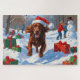 Irish Red Setter Running Snow with Christmas Hat Jigsaw Puzzle