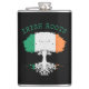 A flask that celebrates your Irish heritage featuring a large oak tree with roots silhouette textured with Ireland's flag.