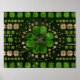 Irish Shamrock Four-leaf clover Malachite and gold Poster