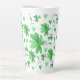 Pretty Irish Shamrock Pattern with 4 leaf clover and love hearts in green on a white background (editable). An attractive design for year round use and perfect as a St Patrick's day gift.