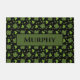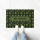 Your name personalised on a stylish Irish shamrock four leaf clover doormat in shades of green and black. Name section is customisable including name, colour, print style, and more. Shown is the name Murphy. Designed by Heard_.