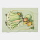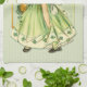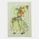 Cute Irish girl or Colleen with pretty hat and basket of shamrocks over pastel background. This vintage design has been carefully hand restored .