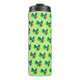 Irish shamrock tumbler in flag colours - thermal travel mug with 'Rock Irish Vibes' design.