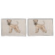 Destei's original cartoon illustration of a cute Soft-coated Wheaten Terrier breed dog. The dog is standing with his head turned towards the viewer. Typical to the breed the dog's eyes are covered with hair and the dog's tail is pointing upwards. The background colour is light beige with a decorative texture. The texture can be removed and the background colour can be changed to any other colour, if so wished.