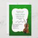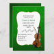Irish themed violin recital invitation done in a green on green floral and shamrock background. A gold edged decorative white text area, has graphics of a violin and musical notes decorating the invitation. All text is ready to personalise, to suit your event needs. Lovely way to showcase your students recital.