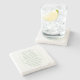 The coasters are gorgeous, a quality feel and heavy weight. They look like a precious archeological find. A rustic stone juxtaposed with a modern floral black and white print. I like the way the print goes slightly imperfect on the cut stone edges giving them a kind-of natural beauty.