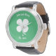 At the heart of the design lies the emblem of Ireland, the iconic Shamrock, delicately placed at the centre of the watch face. Surrounding the Shamrock is a vibrant green hue, reminiscent of the lush Irish countryside, adding a touch of vibrant colour to the design. Above and below the Shamrock, you have the freedom to personalise the text, whether it's a couple's initials, a significant date, or a heartfelt message.