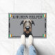 The perfect floor mat for in front of the kitchen sink: the undeniable helper, the Irish Wolfhound.