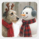 Irish Wolfhound Gazing at a Cute Snowman Square Sticker