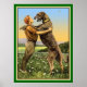 This is a beautiful vintage dog painting featuring an Irish Wolfhound greeting his owner. Artist Unknown.