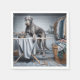 An Irish Wolfhound dog stands on its hind legs while ironing