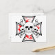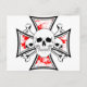 This Iron Cross has three skulls and cross bones. The middle skull is in front of the iron cross while the other two skulls are inside the iron cross. Two bones are crossed behind the iron cross. The Iron Cross has alternating borders of black and white. This design is great for the biker and motorcycle enthusiast.