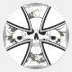 This Iron Cross has three skulls. All three skulls are inside the iron cross. The Iron Cross has alternating borders of black and white. This design is great for the biker and motorcycle enthusiast.