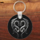 Two silver tribal dragons face each other in this aggressive symmetrical design. The winged serpents have the appearance of being cast out of solid iron which creates a stunning 3D look. The dragons sit on a pure black background creating a striking contrast. The metallic texture and deep silver colour gives this keychain a stylish look.