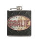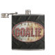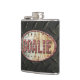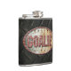 The flask itself is fine. It’s a cheap flask, obviously bought in bulk, however am prepared to overlook that. Given that it is a personalized item, I would have liked to have seen gift boxing instead of the generic packaging. Terrible printing, and/or quality. It’s a cheap, tacky vinyl. It is not cut straight and is also applied in a way that it is overhanging the bottom, causing the glue to catch on items and it will eventually roll and tear, damaging the wrap.