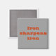 In bold orange print this magnet reads" "Iron sharpens iron.