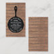 A business card for the food industry featuring an illustration of an iron skillet over a wood background. Personalise the text on front.