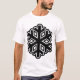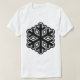 A snowflake design in a 3d effect black and outlined in white, somewhat in the style of an Iron Cross. Very heavy rock.