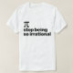 Text says: Pi - stop being so irrational. Great Pi Day gift idea for the mathematician, math student, math tutor, math teacher or math geek