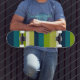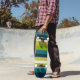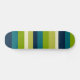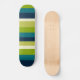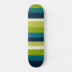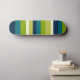 A skateboard with an attractive irregular striped design in harmonious colours.