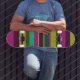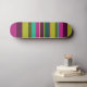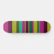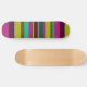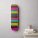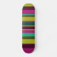 A skateboard with an attractive irregular striped design in harmonious colours.