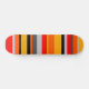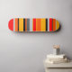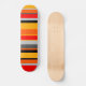 A skateboard with an attractive irregular striped design in harmonious colours.