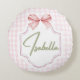Isabella Personalized Pink Bow & Gingham Print Round Cushion
