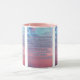 This two-tone mug showcases a design that features a bold print font with light blue letters purple outline displaying the "Isaiah 40:24" KJV bible scripture verse over a picture featuring a dual abstract coloured sky in the background in this faith based theme. This verse is referencing the Book Of Isaiah 40th chapter showing the 24th verse in this bible scripture quote theme from the King James bible. The rim & handle are glazed in matching colours available in 11-ounce or 15-ounce sizes microwave and dishwasher safe ceramic construction.
