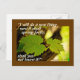 Beautiful inspirational quote scripture custom postcard depicts a branch of budding grape leaves and features Bible Verse Isaiah 43:19, "I will do a new thing, now it shall spring forth; shall you not know it?" The back greeting/prayer can be modified to the details of your choice or deleted for a blank card.~
