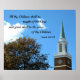 Church steeple against a blue sky, with Bible Verse: "All thy Children shall be taught of the Lord; and great shall be the peace of thy Children. Isaiah 54:13" Wonderful verse for bringing children up with a Christian heritage!