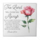 The Lord will guide you always; He will satisfy your needs in a sun-scorched land and will strengthen your frame. You will be like a well-watered garden, like a spring whose waters never fail. Isaiah 58:11 Inspirational Bible Verse with Single Rose Design. Great gift for graduation or gatherings.